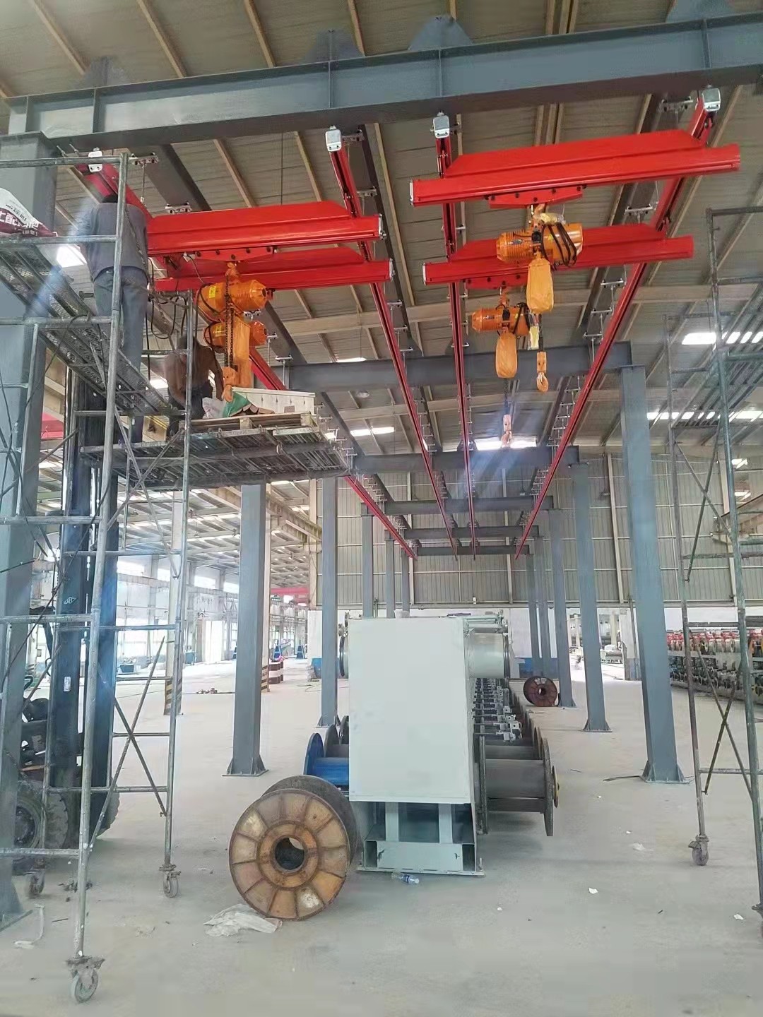 只需簡(jiǎn)單地懸掛在廠(chǎng)房頂板或梁架上便可實(shí)現(xiàn)物料的空中直接輸送,因此被廣泛地應(yīng)用于各行各業(yè)的物料輸送環(huán)節(jié)或系統(tǒng)。