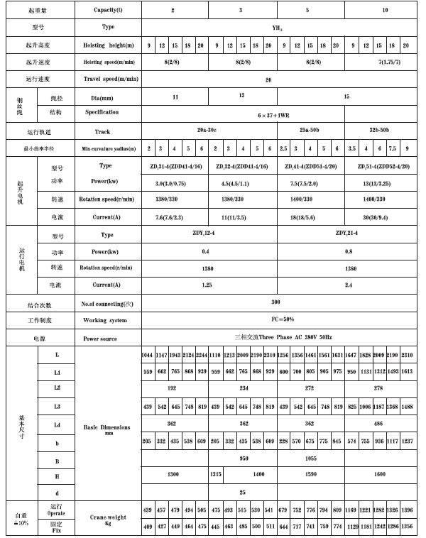 1、 YH系列冶金電動葫蘆主要用于吊運(yùn)熔融金屬的冶金起重機(jī)設(shè)備,其起重量ㄑ20m,工作環(huán)境溫度為-10℃-60℃,在40℃的環(huán)境溫度下,相對濕度不大于50%。