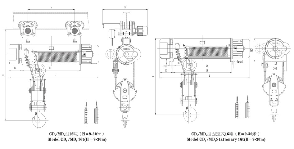 3、 CD1型電動葫蘆的起升速度為常速,可滿足一般使用要求;MD1型電動葫蘆具有兩種起升速度——常速和慢速。
