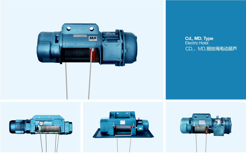 1、 CD1型、MD1型鋼絲繩電動葫蘆是一種輕小型起重設(shè)備,它可以安裝在葫蘆單梁、橋式起重機(jī)、門式起重機(jī)、懸臂起重機(jī)上。稍加改動,還可作卷揚(yáng)用。