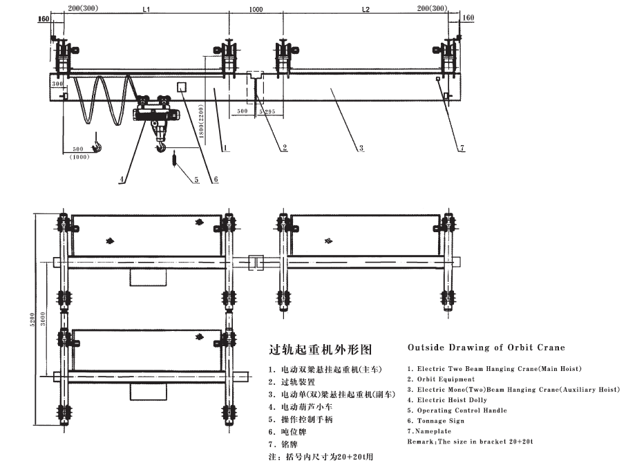 3、 該產(chǎn)品屬于組合設(shè)備,由電動葫蘆小車、電動雙梁懸掛起重機(jī)(主車)、(手)電動單(雙)梁懸掛起重機(jī)(副車)和過軌裝置組成。