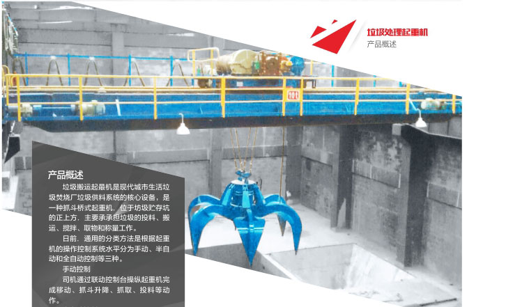 1、 垃圾抓斗起重機是現(xiàn)代城市各種垃圾焚燒發(fā)電廠垃圾供料系統(tǒng)的核心設(shè)備,位于垃圾儲存坑的上方,主要承擔對垃圾的投料、搬運、攪拌、取物和稱重等作業(yè)。